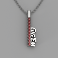 Add a touch of flair to your outfit with the Sterling Silver 'GIG'EM' containing Maroon Garnets Tag Necklace! This stunning modern pendant features the words 'GIG'EM' cut out vertically, making it a unique and eye-catching accessory. Perfect for showing off your Aggie spirit and style!